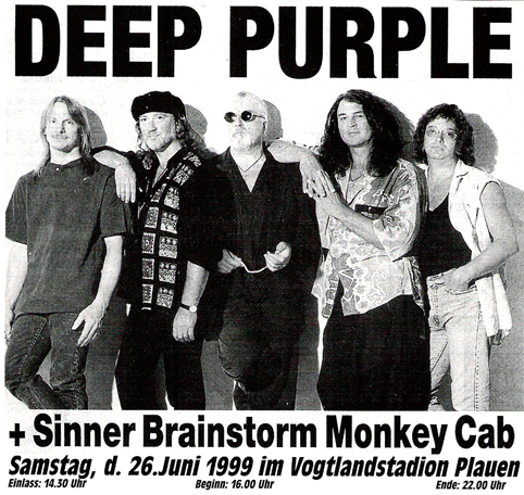 Welttournee von Deep Purple im Vogtlandstadion Plauen mit Sinner, Brainstorm und Monkey Cab